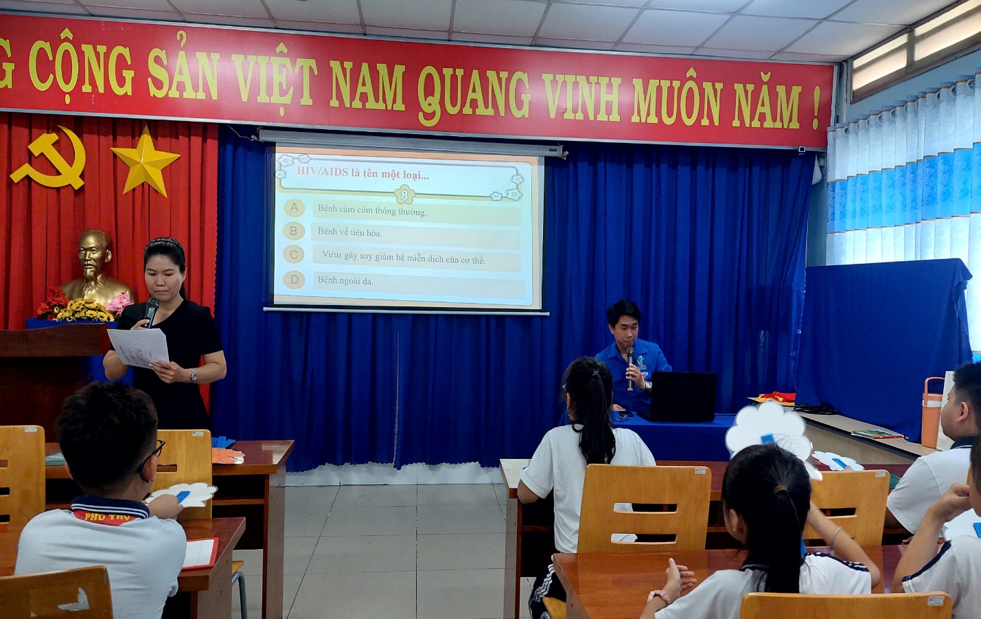 Một số hình ảnh buổi thi rung chuông vàng, sân chơi bổ ích giúp các em có thể hiểu biết hơn về nguyên nhân , cách phòng tránh bệnh. Dưới đây là một số hình ảnh cuộc thi tìm hiểu về phòng chống HIV/AIDS của học sinh trường tiểu học Phú Thọ.